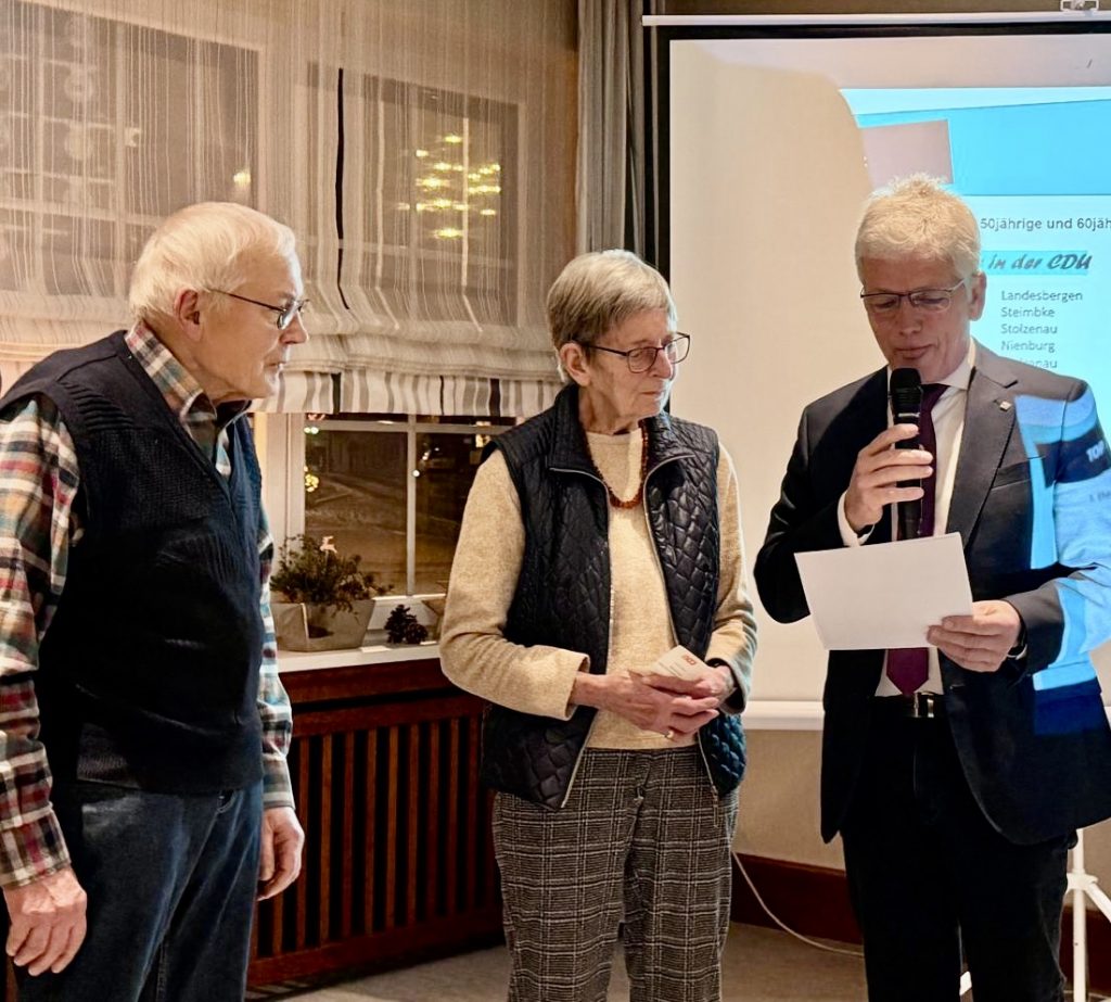 Im Anschluss ehrte der Vorsitzende die anwesenden Jubilarinnen und Jubilare für ihre jahrzehntelange Treue zur CDU. Mit herzlichen Worten würdigte Dr. Schmädeke das große Engagement, die langjährige Verbundenheit und die vielen ehrenamtlichen Beiträge, mit denen die Geehrten das politische und gesellschaftliche Leben im Landkreis bereichert haben. Die Versammlung dankte ihnen mit warmem und langanhaltendem Applaus.