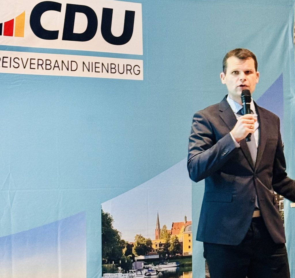 Mit großer Beteiligung und spürbarer Aufbruchsstimmung hat der CDU-Kreisverband Nienburg seinen diesjährigen Kreisparteitag durchgeführt. Kreisvorsitzender Dr. Frank Schmädeke begrüßte zahlreiche Mitglieder – darunter viele Neumitglieder – und stellte die form- und fristgerechte Einladung sowie die Beschlussfähigkeit fest. Der Saal war gut gefüllt, die Atmosphäre engagiert und herzlich: ein starkes Zeichen für den politischen Jahresauftakt 2026.